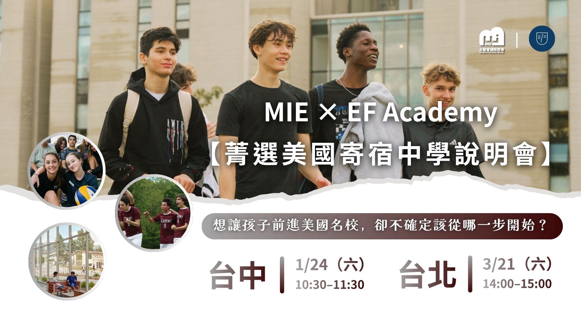 【菁選美國寄宿中學說明會】將帶您全面了解 美國寄宿高中(American Boarding School)、升學途徑、合法身份規劃與申請流程,並由 EF Academy 官方代表親自說明最新招生資訊、校園亮點與學生生活體驗,協助家長為孩子規劃最佳留學路線。