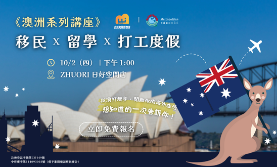 《澳洲系列講座》移民 × 留學 × 打工度假跨界實體講座