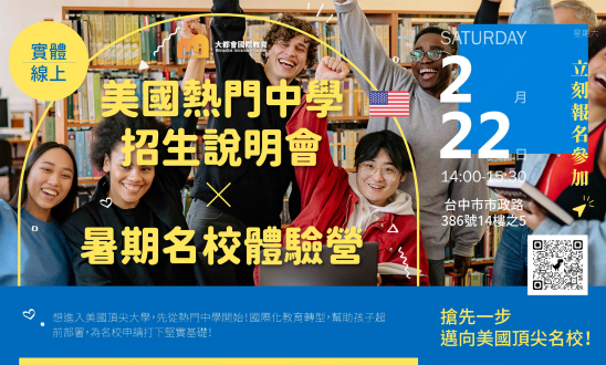 美國熱門中學招生說明╳暑期名校體驗營|實體+線上說明會